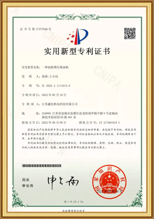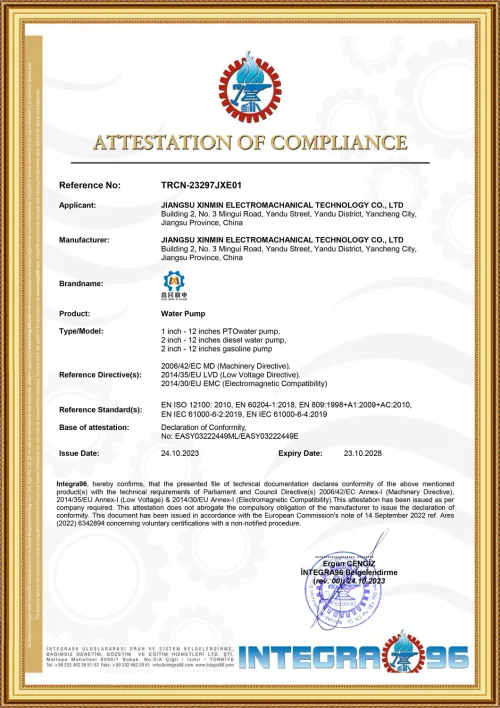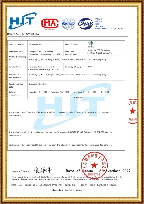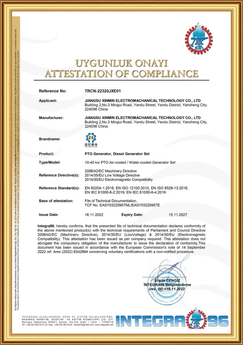 • CE generator PTO certificate